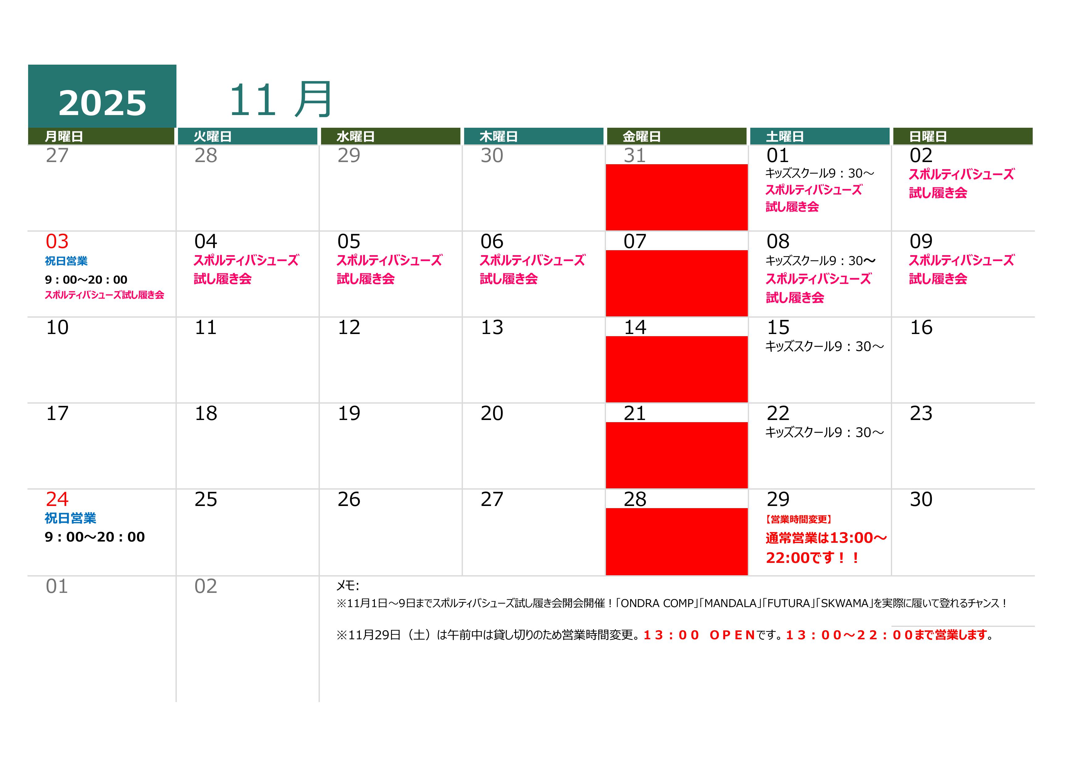 1日〜9日まではスポルティバシューズ試し履き会開催!